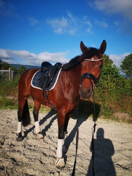 Zum Verkauf steht eine braune 6-jährige Hannoveraner Stute von Follow me x Sandro Hit. Fia Bella „Effi“ hat ein Stockmaß von 1,68 m, und ist für jeden Spaß zu haben. Sie fällt einem alleine schon aufgrund ihrer Schönheit ins Auge. Wir wünschen uns für sie einen absoluten Bestplatz, wo sie als vollwertiges Familienmitglied geschätzt und dementsprechend auch gut behandelt wird. Wir wünschen uns für sie ein Zuhause, in dem sie einem ambitionierten Freizeitreiter oder Anfänger Freude bereiten kann. Sie freut sich über Ausritte, egal ob alleine oder in der Gruppe. Ob Halle, Reitplatz oder Gelände, sie geht unerschrocken in allen drei GGA. Aufgrund ihrer guten Abstammung könnte ich sie mir ebenfalls für die Zucht vorstellen. Sie hat bereits 4-jährig ein Fohlen bekommen und war eine tolle Mutter. Das Aufnehmen und Abfohlen hat problemlos funktioniert. Ihre Stutenprüfung hat sie erfolgreich mit der Auszeichnung des A1-Preises absolviert. Sie ist im Umgang ein absoluter Schatz und völlig unkompliziert, genau wie beim Verladen. Effi ist regelmäßig entwurmt und geimpft. Sie ist sehr verträglich mit anderen Pferden, da sie eher Rang niedig ist. Röntgenbilder von 03/24 liegen vor. Da Effi koppt, wird sie weit unter Wert angeboten. Es ist kein Notverkauf! Video und weitere Infos bei ernsthaftem Interesse.