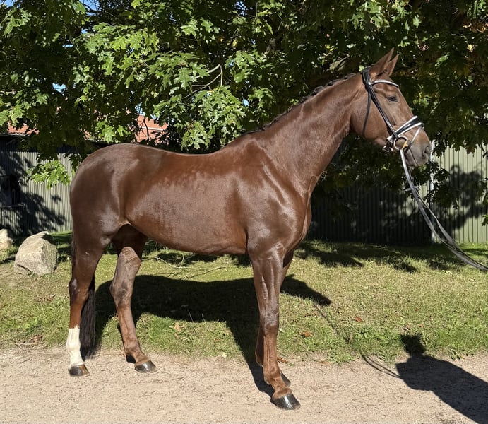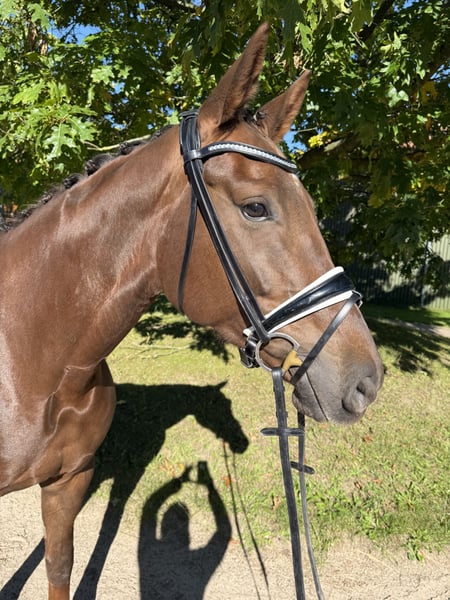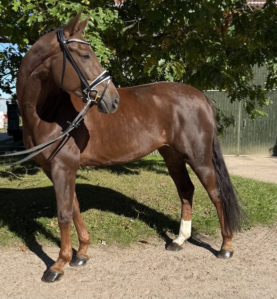 Zum Verkauf steht diese außergewöhnliche Dunkelfuchsstute, die durch ihre beeindruckende Bewegungsqualität und moderne Ausstrahlung besticht. Sie hat 3 überdurchschnittlich gute Grundgangarten und ist sehr fein zu reiten. Ein Pferd für ambitionierte, anspruchsvolle Reiter, die Exklusivität, Qualität und Perspektive schätzen, sowohl im gehobenen Sport als auch als künftige Zuchtperspektive (Stamm der Schliesserin) • Alter: 6 Jahre • Stockmaß: ca. 170cm • Abstammung: Don Martillo / De Niro • Ausbildungsstand: Dressurpferde A platziert • Charakter: Rittig, motiviert, sensibel, menschenbezogen und angenehm im Umgang • Gesundheit: Regelmäßig geimpft und entwurmt, ohne Befunde beim Röntgen ( aktuelle AKU vorhanden ) • Preis: auf Anfrage Bei Interesse freuen wir uns über Ihre Kontaktaufnahme.