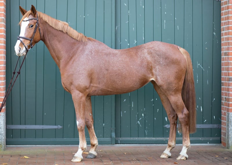 This friendly, large-framed chestnut mare by Qualito×Carrico is looking for a new home. She impresses not only with her lightness in daily work but also with her talent and the necessary caution over fences. Sally is 6 years old and stands at 16.1 hh. Due to the lack of a rider, she has only been in active training since June 2025 and is still in training. She has competed up to SPF A** level (competition name: Quento 10). Sally is ideal for an ambitious rider who wants to combine sport and leisure and is looking for a motivated partner by their side. She is being offered at a significantly reduced price due to her back. X-rays of her back are available with no findings. No other X-rays are available. Please contact exclusively by phone or WhatsApp at 0174 9125843.
