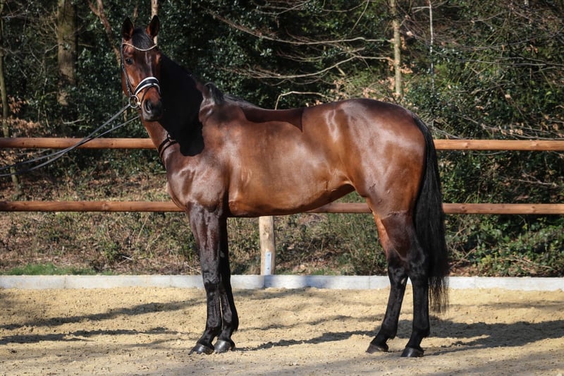 Elegante Hannoveraner Stute – Vielseitige Dressurpartnerin für anspruchsvolle Reiter Diese beeindruckende Hannoveraner Stute, geboren im Jahr 2020, besticht durch ihre elegante Erscheinung und ihr vielversprechendes Potenzial im Dressursport. Mit einem Stockmaß von 170 cm bietet sie die perfekte Größe für ambitionierte Reiter, die Wert auf eine harmonische Verbindung zwischen Reiter und Pferd legen. Die braune Stute überzeugt durch ihren ausgeglichenen Charakter. Sie zeigt eine aufgeschlossene und lernbereite Natur, was sie zu einer idealen Partnerin für den Aufbau im Dressursport macht. Ihre Bewegungen sind geschmeidig, taktklar und ausdrucksstark – Eigenschaften, die sie für die Dressur prädestinieren. Sie wurde bisher sorgfältig und schonend ausgebildet und befindet sich in einer soliden, gut durchdachten Trainingsphase. Sie wurde 5 jährig angeritten und war jeden Tag unkompliziert und immer brav. Sie freut sich auch über einen gemütlichen Ausritt und kennt auch Stangenarbeit. Dank ihrer freundlichen und kooperativen Art ist sie sowohl für fortgeschrittene Reiter als auch für ambitionierte Nachwuchspferde-Reiter bestens geeignet. Diese Hannoveraner Stute bietet eine hervorragende Basis für die weitere sportliche Entwicklung und ist eine echte Bereicherung für jeden Dressurstall. Bei Interesse freuen wir uns auf Ihre Kontaktaufnahme, um Ihnen dieses vielversprechende Pferd persönlich vorzustellen.
