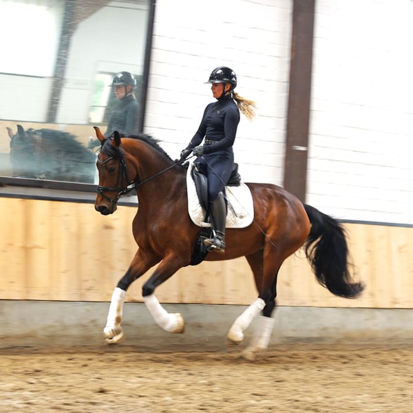 Deze prachtige merrie overtuigt door haar onverslaanbare uitstraling en veel kwaliteit. Ze wordt momenteel op L/M niveau gereden. Ze toont een zeer goede, ruime stap, een mechanische draf met overtuigend achterbeen, en een bergopwaartse galop over sprongen. Een recent, goedgekeurd TÜV met hals en rug ligt ter inzage. In omgang zeer braaf, onder het zadel zeer rijdig maar fijn en elektrisch. Ze laat zich ook rustig met een zadelpad berijden en staat open voor plezierritten. Toch geen paard voor af en toe rijden, maar een paard voor de ambitieuze, sportief fijn rijdende, zelfverzekerde ruiter. https://youtube.com/shorts/9_FZxDMXi2g?si=yA8uzjs--h8A8sFF Meer informatie en video's onder: 0177 275 9886