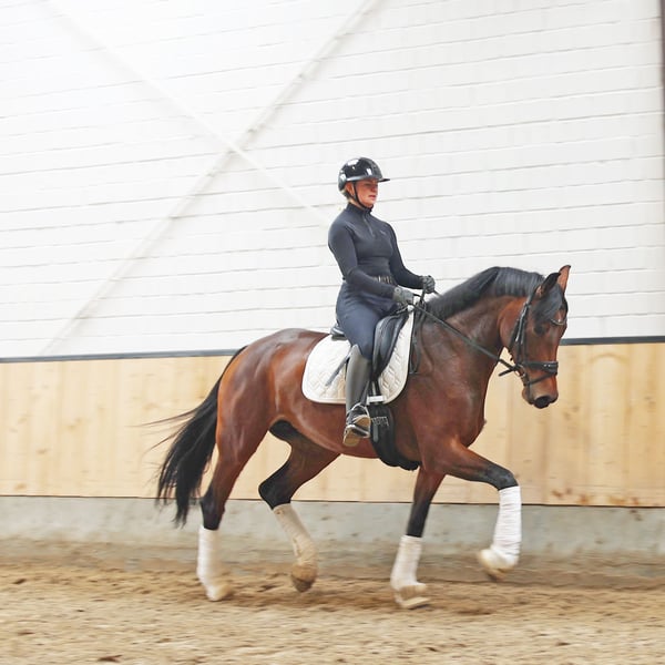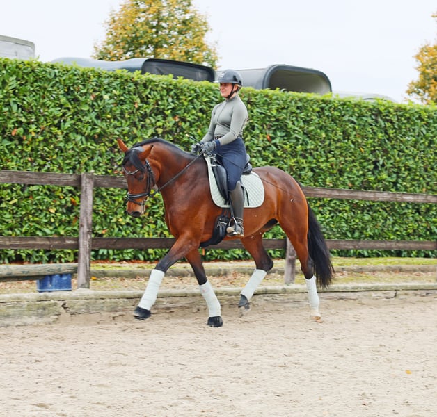 Deze prachtige merrie overtuigt door haar onverslaanbare uitstraling en veel kwaliteit. Ze wordt momenteel op L/M niveau gereden. Ze toont een zeer goede, ruime stap, een mechanische draf met overtuigend achterbeen, en een bergopwaartse galop over sprongen. Een recent, goedgekeurd TÜV met hals en rug ligt ter inzage. In omgang zeer braaf, onder het zadel zeer rijdig maar fijn en elektrisch. Ze laat zich ook rustig met een zadelpad berijden en staat open voor plezierritten. Toch geen paard voor af en toe rijden, maar een paard voor de ambitieuze, sportief fijn rijdende, zelfverzekerde ruiter. https://youtube.com/shorts/9_FZxDMXi2g?si=yA8uzjs--h8A8sFF Meer informatie en video's onder: 0177 275 9886