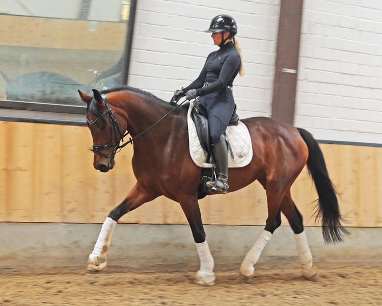 This stunning mare captivates with an unbeatable appearance and exceptional quality. Currently ridden at A/L level. She demonstrates a very good, ground-covering walk, a trot with plenty of mechanics and a convincing hind leg, and an uphill canter with good scope. A recent, valid TÜV including neck and back is available. In handling, she is very well-behaved; under saddle, she is very rideable, yet sensitive and lively. She is also calmly ridden with a saddle pad and is open to any fun rides. However, she is not suitable for occasional riding, but rather for the ambitious, finely riding, confident rider. https://youtube.com/shorts/9_FZxDMXi2g?si=yA8uzjs--h8A8sFF Further information and videos available at: 0177 275 9886