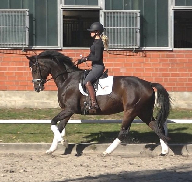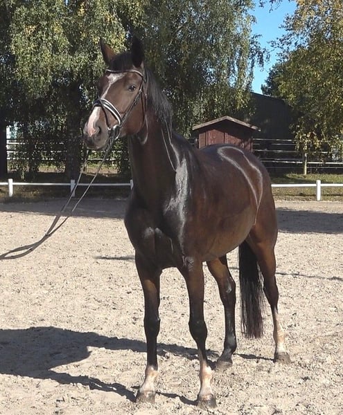 Quilena is a full sister to the Hanoverian approved stallion Quintessential, who became the winner of the 2-day performance test with an outstanding score of 8.94 (gallop 9.7). At three years old, he was vice-champion of the regional championships and was nominated for the Federal Championship of three-year-old stallions. She is a strikingly beautiful and elegant mare, and when she moves, she captures everyone's attention with her powerful, energetic, yet light-footed movement. She moves confidently at an advanced level, already mastering most L-level dressage movements, and as the difficulty increases, her ambition seems to grow. She wants to please, and we wish her a rider who can give her confidence. A very good radiological examination, including neck and back, is available. Quilena has an excellent pedigree: her sire, Q-Sieben, was the dressage winner at his three-year-old performance test with a score of 8.71 and a 9.5 for rideability, and he was vice-champion. On her dam’s side, Quilena descends from an old Hanoverian mare line dating back to 1883, which has produced numerous high-priced elite auction foals and horses. This line includes winners at the Hanoverian Verband and several licensed stallions such as Edinburgh and the successful St. Georg-level performer Weltgraf II. The line also features the successful Laudabilis, with numerous approved sons, and traces back to the old mare line from 1883 through her sister to the third dam. Quilena is a mare of honest character, with outstanding movements in all three basic gaits, and she aims high, promising a bright future in a successful dressage career.
