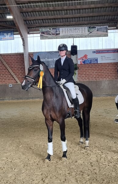Dieser Youngster lässt keine Wünsche offen, sie ist mehrfach A Dressur auf dem Turnier platziert (auch gewonnen) Super leichtrittig, nervenstark und von Amateuren zu Händeln, können wir sie uns sehr gut als Umsteigerpferd oder für Wiedereinsteiger vorstellen. Auch kleine Sprünge sind gar kein Problem, sie ist auch in Eignungsprüfungen bereits platziert. Im Gelände zeigt sich ebenfalls ihr toller Charakter, egal ob alleine oder in der Gruppe, auch ausreiten ist gar kein Problem. Sie ist vorne beschlagen . Ein sehr guter Röntgen TÜV liegt vor und kann bei Bedarf zugeschickt werden. Bei Interesse an Videos (Turniervideos) oder an einem Probereiten gerne telefonisch unter 01711928847 Kontakt aufnehmen. Wir bitten von Nachrichten über Ehorses abzusehen, da wir hier nur unregelmäßig aktiv sind!