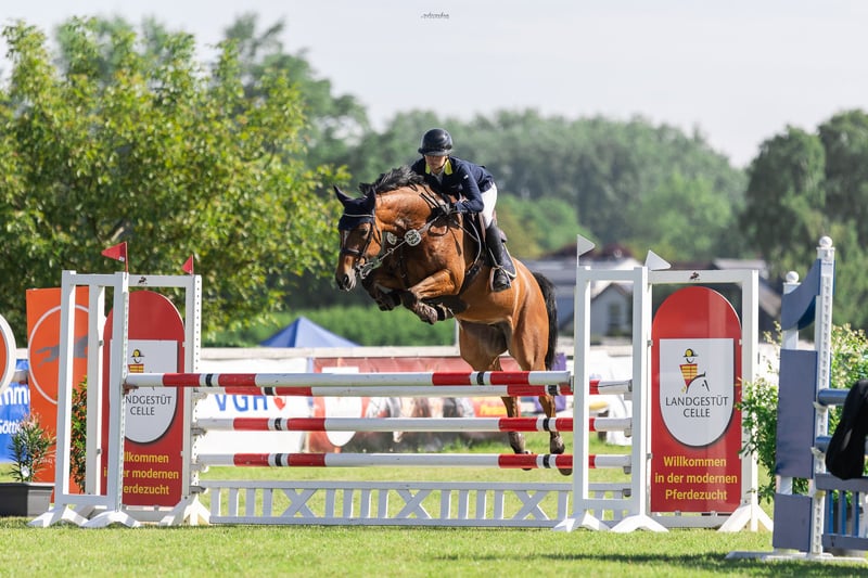 We are looking for a new home for our beautiful Hanoverian mare. This talented mare impresses not only with her appealing stature but also with her wonderful character and willingness to learn. She has already collected several placements in show jumping classes A and L as well as 115 cm this year and shows great potential for more demanding tasks. The mare is well-behaved, well-trained, and has a friendly disposition. She is suitable for both ambitious riders aiming for high-level competition and for amateurs. Currently, she is also being ridden by a 12-year-old girl, jumping and going out on trails. She is fully equipped with talent, ambition, caution, and is now waiting for her carrot giver, for whom she will fight through fire and every course. If you are interested or would like more information, we look forward to your message. Viewings are possible by arrangement. We are excited to find the right rider for our mare!