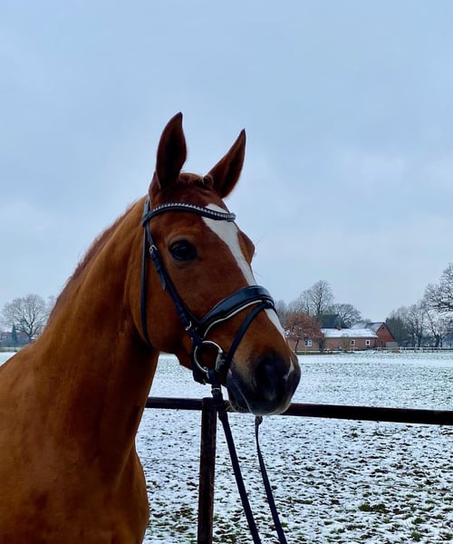 Rachel ist eine im Jahr 2019 geborene Hannoveraner-Prämienstute mit einem sehr lieben und unkomplizierten Charakter. Ein ideales Pferd für die/den ambitionierte(n) ReiterIn, auch für Jugendliche/junge ReiterInnen, da sie im Umgang (von einer Person zu verladen, nett zu anderen Pferden, kuschelt gerne, etc.), wunderbar ist und zudem unter dem Sattel über viel Potenzial verfügt. Sie ist im letzten Jahr bereits Dressurpferde M platziert gewesen und ist nun auf dem Weg in Richtung S. Ihre Röntgenbilder liegen vor und wurden vom Tierarzt als gut eingestuft. Wir sind ein alteingesessener Züchterbetrieb und haben auch noch andere Pferde mit verschiedenen Ausbildungsständen zu verkaufen. Bei Interesse melden Sie sich gerne!