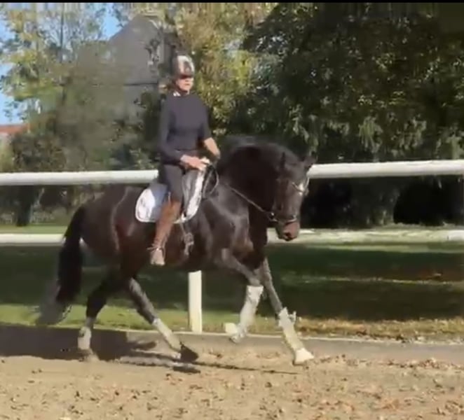 Im Auftrag 7 j sehr schicke typvolle Stute von Quantensprung zu verkaufen. Sie hat schöne lockere GGA und hat ein sehr schönes Seitenbild. Sie verleiht ihrem Reiter ein sehr schönes Reitgefühl da sie sehr angenehm zu sitzen ist und einen angenehmen Schwung hat. Sie ist vorne beschlagen (kein Muss) Kennt Boxenhaltung sowohl auch Offenstallhaltung. Sehr herdenverträglich und unkompliziert. Video ist aktuell vom 18.10.25 Reiterin auf dem Video ist 1.81m Standort Hamm 017661987617
