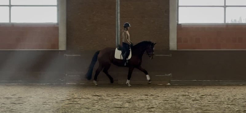 Zentina è una cavalla molto graziosa e simpatica che porta semplicemente gioia ogni giorno! A tre anni è stata brevemente messa in sella, poi ha avuto due puledri molto energici ed ora sta riprendendo l'addestramento. Collabora molto bene e desidera sempre compiacere. Sia sotto la sella, nel rapporto quotidiano, durante il carico in furgone – è sempre molto semplice e facile da gestire. Ma è interessante anche per la riproduzione: Proviene da una genealogia molto buona – sua madre è la sorella completa di Nymphenburg’s First Ampere! È sempre rimasta incinta al primo tentativo e ha partorito senza problemi. Se cercate una cavalla incantevole, siete nel posto giusto! Per ulteriori informazioni, non esitate a chiamare o scrivere su WhatsApp al numero 0172-2942839.