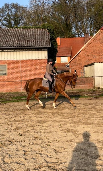 Se ofrece a la venta esta yegua Hannoverana de casi 7 años, por Zinedream (Haras Bonhomme), de madre Earl X Wildfang, criada en nuestra propia cuadra. Fue montada de manera suave y tardía, y desde entonces ha mostrado ser muy receptiva al aprendizaje. Debido a la falta de tiempo por mi parte, aún no está completamente entrenada, y una lesión superficial en la articulación del corvejón delantero, que sufrió el pasado otoño (curada, sin daños profundos, radiografías de las patas delanteras disponibles), hace que actualmente no esté en entrenamiento. Le encanta que la cuiden y regularmente es cepillada por niños de entre 7 y 10 años. Es dócil en su trato, aunque al enfrentarse a cosas nuevas todavía muestra algo de timidez; sin embargo, tampoco ha tenido mucha experiencia en el día a día de un caballo de montar. A la hora de montar, disfruta mucho del trabajo, pero debido a su poca experiencia no es una yegua para principiantes. Una vez que algo se vuelve rutina, rara vez presenta “problemas” y se vuelve más valiente. Conoce varias máquinas y diferentes animales como vacas, cabras o gallinas. La vendo como caballo de ocio, aunque seguramente también tiene potencial para convertirse en un buen caballo de dama o de cambio para concursos. Por su carácter excepcional, especialmente con niños, la veo también como una opción ideal para una familia, siempre que alguien con experiencia se encargue de la “trabajo básico”. Busco un buen hogar para ella, priorizando la calidad sobre el precio. Actualmente no es posible realizar una prueba de monta, pero puede ser vista en cualquier momento.