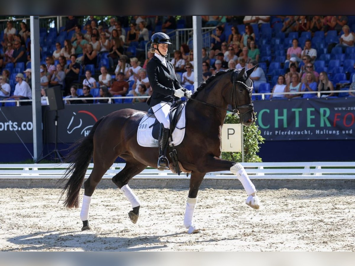 Hildegard (2019) is a 7-year-old bay mare with very expressive, ground-covering basic gaits and proven sporting ability. Finalist at the 2024 Bundeschampionat for 5-year-old dressage horses – 9th place Qualified for the Small Final at the 2025 Bundeschampionat for 6-year-old dressage horses – 12th place Placed in dressage horse M class Training level: M, with S-level exercises demonstrated in training Owned since foalhood, gently backed at age four, and consistently developed for sport. Competition-ready, clear performance profile, with potential for further training. Details: Approx. 172 cm, Hanoverian, located in Germany (Lippetal). X-rays available (no findings). Competition history: Rimondo "Hildegard 13". Videos and X-ray images available upon request. Price: commensurate with quality. Contact: Serious inquiries only from ambitious sport riders, investors, and professionals.