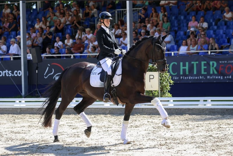 Hildegard (2019) ist eine 7-jährige Rappstute mit sehr guten, raumgreifenden Grundgangarten und sportlich belegter Leistungsfähigkeit. Finalistin Bundeschampionat 5-jährige Dressurpferde (2024) – Platz 9 Qualifiziert Kleines Finale Bundeschampionat 6-jährige Dressurpferde (2025) – Platz 12 Dressurpferde M platziert Ausbildungsstand: M-Niveau, S-Lektionen im Training gezeigt Seit dem Fohlenalter im Besitz, schonend vierjährig angeritten und konsequent sportlich aufgebaut. Turniererprobt, klar im Leistungsbild, mit Perspektive für die weiterführende Ausbildung. Rahmendaten: ca. 172 cm, Hannoveraner, Standort Deutschland (Lippetal). Röntgen vorhanden (ohne Befundbewertung). Turnierhistorie: Rimondo „Hildegard 13“. Videos & Röntgenbilder auf Anfrage. Preis: der Qualität entsprechend. Kontakt: nur ernsthafte Anfragen von ambitionierten Sportreitern, Investoren und Profis.