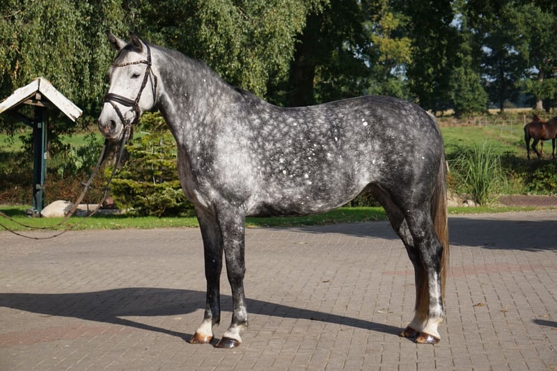 Beautiful mare with heart and potential – "Dia Casina" is looking for her new home Breed: Hanoverian Gender: Mare Year of Birth: 2019 Height: 16.1 hh Pedigree: Diacontinus x Casino Berlin x Carismo Dia Casina is a charming, expressive mare with a striking presence and a lot of charisma. Her conformation and temperament also impress with their positive appearance. She impresses with her loving nature – both in daily handling and under saddle. She has already been successfully shown in competitions and consistently demonstrates motivation, attentiveness, and willingness to perform. In 2023, she foaled a Casallco colt, which won at the show and was thus qualified for the foal championship. In 2024, due to my limited time, she was not worked extensively. She has been gently trained and will be regularly ridden from winter 2024/25 onward. In jumping, she shows great scope, talent, and excellent technique. She is also calm and fearless in the outdoor riding environment, having experienced tractors, cars, farm machinery, other animals, and more at our farm. In dressage, she is sensitive to aids, reacts very finely, and is attentive to her rider. Due to her work ethic, she is looking for a rider with a delicate feel in the saddle. In daily handling, Dia Casina is friendly, people-oriented, and uncomplicated. Whether in the indoor arena, on the riding field, or in the outdoor environment – she always proves to be reliable. She is being sold due to her own offspring. Health: Regularly vaccinated, dewormed, regularly trimmed by the farrier, currently sound (X-rays available upon request from October 2025). Temperament: Curious, people-oriented, well-behaved, very eager under saddle. Suitable for: Leisure riding / Dressage / Jumping / Breeding Location: Großefehn, 26629 A loving home is especially important to me – therefore, she will only be placed in the best hands. 📞 Contact: +49 1739022088 📸 More photos and videos gladly available upon request!