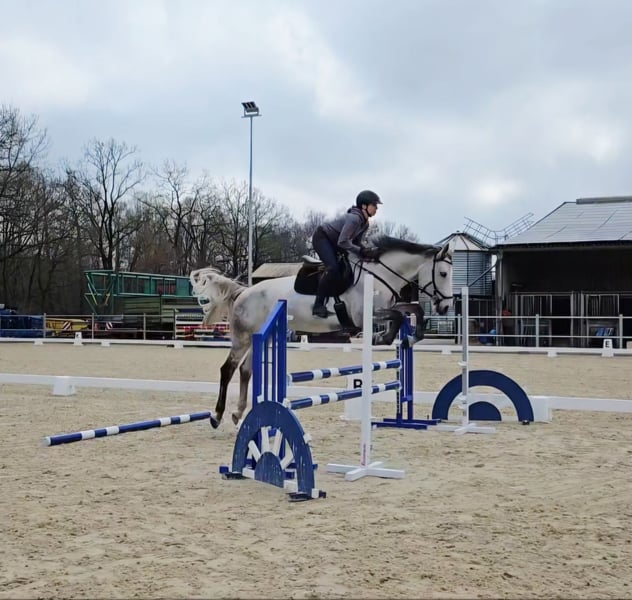 Due to health reasons, I was unfortunately unable to properly develop my mare Arielle according to her age, and I have now decided to place her in good hands. Arielle is a completely reliable horse in the field, familiar with water and logs. She has great potential as a show jumper but has been only lightly jumped under saddle. She is also familiar with dressage work and lunging over poles. For several months, she has been ridden sporadically and exclusively by very inexperienced riders. Since December, she has been ridden regularly. She consistently behaves well and is a pleasure to ride. Unfortunately, I am currently unable to ride her myself. The jumping video shows Arielle under an inexperienced rider, who has jumped her twice now. Arielle knows outdoor arenas with floodlights as well as riding indoors. She is currently barefoot but is also familiar with glue-on shoes. She has not been transported in a trailer for a long time, so I cannot comment on her loading behavior. However, she has already experienced two stable changes. I am looking for a caring home with experience in horse training. Due to her strong character and well-mannered temperament, I can see her excelling both in show jumping and eventing. Please refrain from riding tourism, and I charge €30 for a trial ride, which will be deducted afterwards.