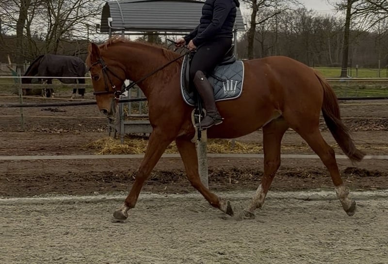 This mare, born in 2018, impresses with her gentle nature, honesty under saddle, and strong bond with her human handler. Standing approximately 1.64 meters, she is an ideal upgrade horse for riders who have outgrown the beginner level and are seeking a more sensitive, refined partner. She is not a beginner horse, but under saddle, she behaves well, cooperates, and is reliable, provided she has a calm, confident rider who can give her a sense of security. She requires a consistent caregiver and clear, fair communication. She does not thrive with frequent rider changes – stability and trust are essential for her. Once this trust is established, she becomes an extremely motivated and honest partner. Bred from Qualito out of a Gramsel II mare (by Graf Top), she has been bred for dressage and show jumping. She is trained up to A-level in dressage and regularly participates in E-level jumping courses. Additionally, she has proven reliable during riding badge courses and shows potential for further development. In free work, she demonstrates particular talent and attentiveness. Even off-site, at clinics or competitions, she remains calm and dependable. The mare thrives in a pasture-based environment, adapts well, and ranks in the middle of the herd hierarchy. She is not given away for free, but a fair price is negotiable for a suitable home and a likeable owner. Additionally, accessories such as a dressage saddle and a jumping saddle can be included at an extra cost. Due to my demanding professional schedule, I kindly ask serious interested parties to arrange a personal viewing promptly rather than lengthy, non-committal WhatsApp conversations. Videos are available and can be sent in advance via WhatsApp. We prefer to discuss further details during a direct, personal meeting.