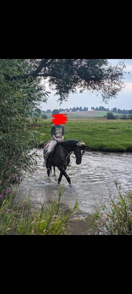 Na sprzedaż wystawiam moją 8-letnią klacz Be Happy o wierzchowcowym wzroście około 1,64 m. Zachwyca doskonałymi podstawowymi chodem i dużym wyrazem. Obecnie ponownie jest w treningu rozwojowym. Be Happy została już pod siodłem i w 2022 roku zdała próbę ujeżdżeniową dla klaczy, jednak dotąd nie brała udziału w zawodach i nie posiada żadnych miejsc. Z radością i talentem skacze przez przeszkody. Pod siodłem jest obecnie trenowana niewiele, dlatego czasami może się bardzo łatwo rozpraszać. Potrzebuje spokojnego, konsekwentnego i doświadczonego jeźdźca, który zapewni jej poczucie bezpieczeństwa i jasno wyznaczy struktury. W pracy w ręku jest bardzo zmotywowana, uważnie współpracuje i szybko uczy się nowych ćwiczeń. W terenie jest jeszcze nieco płochliwa z powodu braku doświadczenia. W kontaktach ogólnie jest grzeczna, jednak lubi sprawdzać swoje granice – nie jest więc odpowiednia dla początkujących ani dzieci. Załadunek na trailer bez problemu, jeśli jest karmiona. Zdrowie: Be Happy została pozytywnie przebadana na PSSM 2 px. Przy odpowiednim zarządzaniu dietą radzi sobie dobrze. Od czasu do czasu odczuwa napięcia w grzbiecie, szczególnie przy chłodnej pogodzie. Hodowla: Nie może stać z lub bezpośrednio obok wałacha, ponieważ wtedy na stałe jest rująca. Życzę jej doświadczonego jeźdźca z sercem, cierpliwością i stanowczością, który doceni jej charakter i będzie gotowy kontynuować z nią pracę. Lokalizacja: okolice Rohr w Bawarii Południowej Cena: do negocjacji – oferta przyjazna cenie Oględziny: Koniec można obejrzeć po wcześniejszym umówieniu, możliwa jest praca na lonży. Jazda konna ograniczona ze względu na obecny stan treningu.