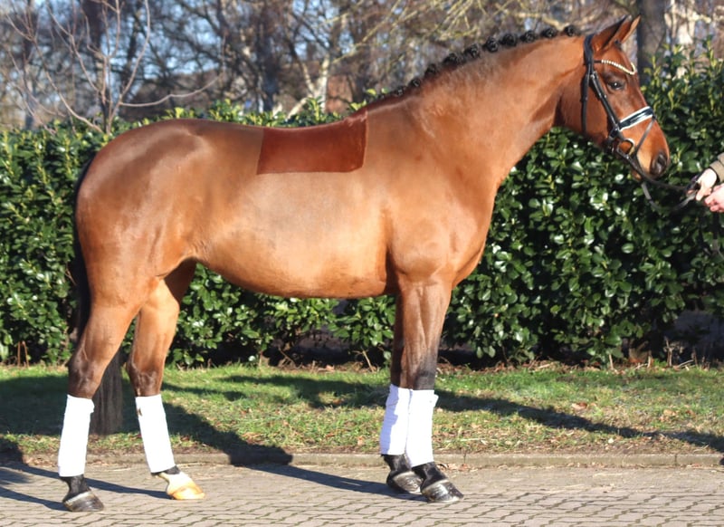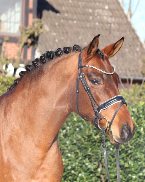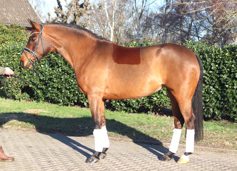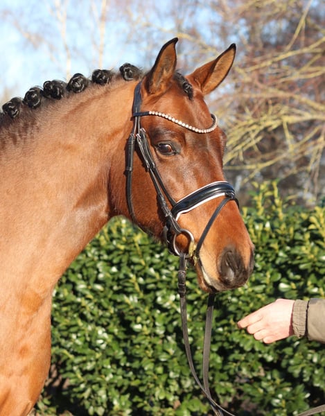 Charming 8-year-old mare by Benicio x Quotenkönig, with three good basic gaits. She has already gained competition experience and is currently ridden at L/M level, showing excellent manners in handling. Price excluding VAT. Inquiries only by phone; emails will not be answered.