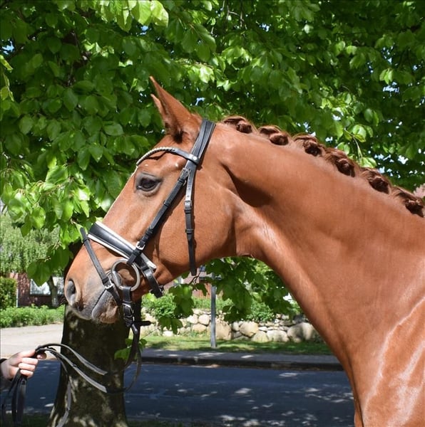 Hübsche Stute, die sich unkompliziert und gelassen präsentiert. Sie ist sehr brav zu reiten und kennt auch Gelände. Dazu ist sie nervenstark und von jedermann zu reiten. Mit ihrer edlen Erscheinung und Bewegungungen in guter Qualität ist sie ein echter Hingucker im Viereck. Ein Pferd zum Losreiten und Schleifen sammeln! Mehr Infos finden Sie auf unserer Homepage. Probereiten jederzeit nach Absprache möglich.