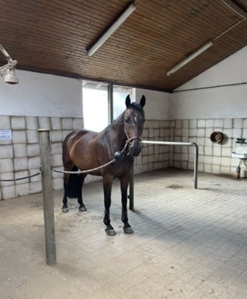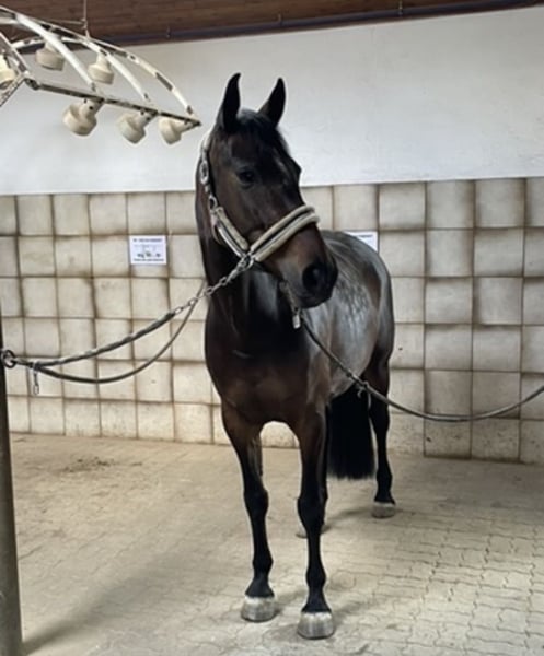 With a heavy heart, we are parting with our mare as we can no longer give her the time she deserves. She is a show jumping bred mare. My 14-year-old daughter currently jumps her at E-level. She is confident in the terrain and loves hacking out. Unfortunately, she was diagnosed with osteoarthritis in her hock last year. She has been regularly treated with injections, and it is hardly noticeable. At the moment, she is kept in box stall with several hours outside daily. I could also imagine keeping her in a paddock herd. Piri is a barefoot horse. She is only to be placed in loving, experienced hands as a leisure horse.