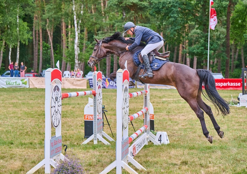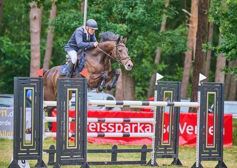 Na sprzedaż jest nasza 8-letnia klacz Misses Marple. Pochodzi od Magnusa Romeo x Landor S x Cor de la Bryere. Została przez nas delikatnie wykształcona i wprowadzona do sportu jeździeckiego. Obecnie jest zwyciężczynią w konkursach skokowych klasy 1,25 m i wielokrotnie zajmowała miejsca w skokach na wysokości 1,40 m. Przekonuje swoim zapałem i energią na parkurze. Była jeżdżona wyłącznie przez amatora, ale z powodu swojego zapału nie nadaje się dla początkujących. W przypadku zainteresowania prosimy o telefon lub kontakt przez WhatsApp.