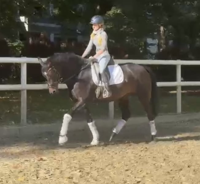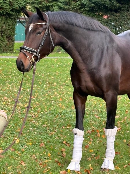 On behalf of a client, we are offering a beautiful 8-year-old, well-built, compact mare for sale. She is stunning, has an excellent conformation, and naturally draws attention wherever she goes. She has three very good gaits, characterized by rhythm and freedom of movement, a lovely, expressive walk with plenty of overtrack, and a fantastic uphill canter. Initially, she was ridden and, due to her quality and pedigree, has been used in breeding. She performed a wonderful job there and has passed on her qualities very well. She is now lightly restarted under saddle and demonstrates excellent rideability, with very smooth, comfortable gaits and a pleasant seat. Unfortunately, due to lack of time and space, we are offering this mare at a favorable price for someone with a smaller budget who is willing to invest in further training. A recent veterinary examination has been carried out and is available. The mare is very herd-friendly and extremely easy to handle. The current video was filmed today, October 22, 2025.
