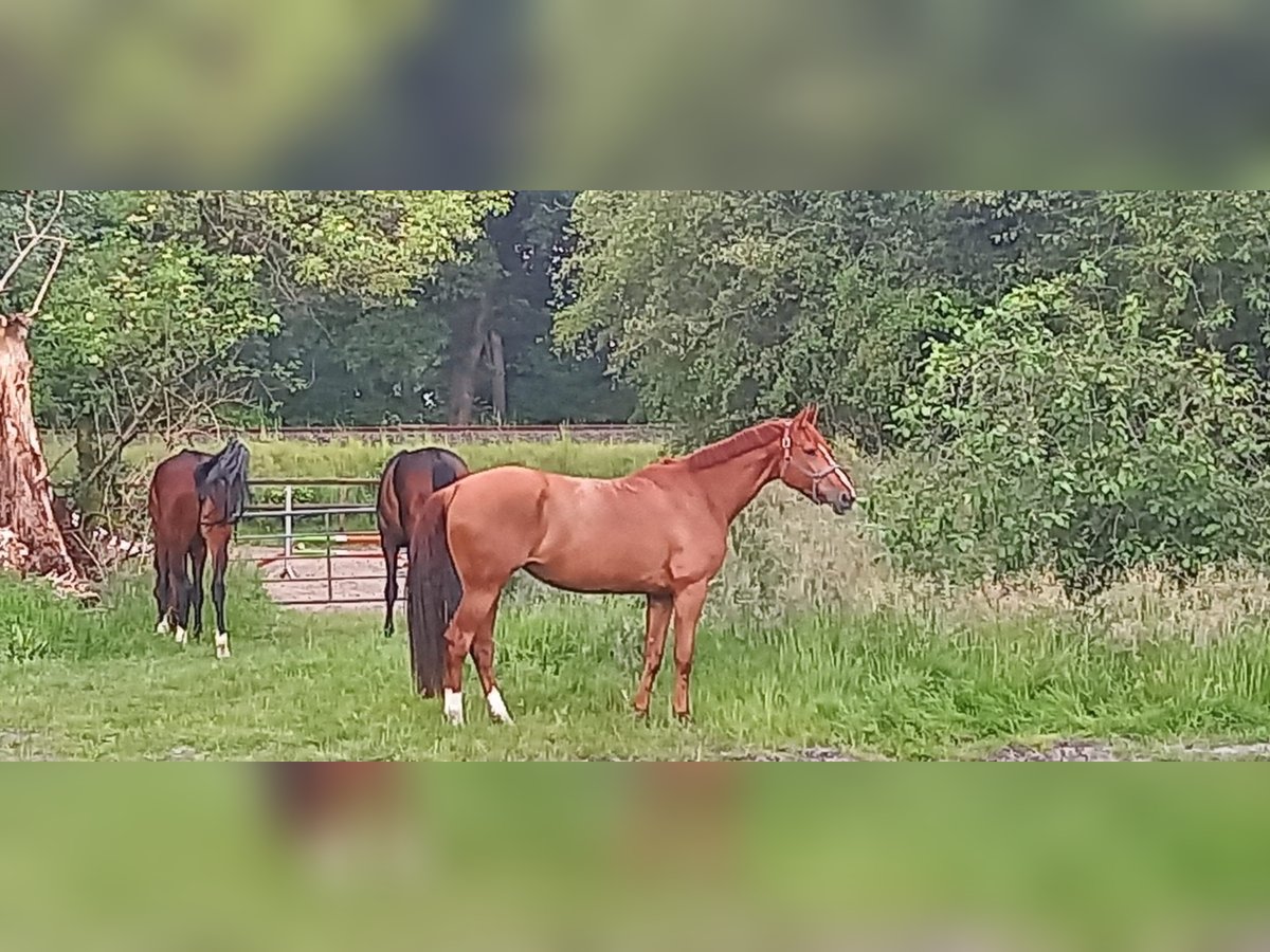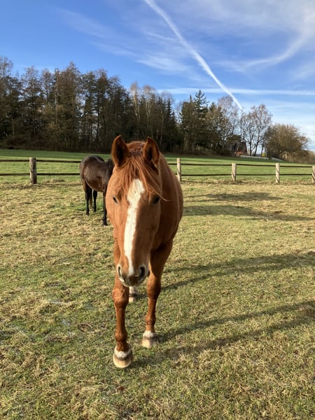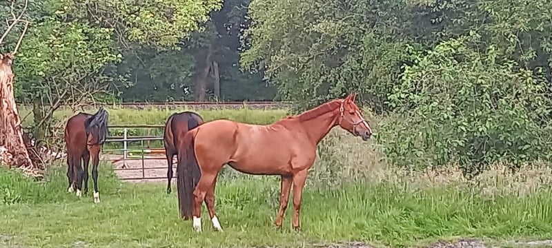 Lex Lugar x Garant Lex Lotta is a 7-year-old chestnut mare with lineage from Lex Lugar. She demonstrates impressive talent and enjoys jumping. She stands approximately 16.1 hh and is generally lower in the herd hierarchy. She is friendly in handling but can sometimes be stubborn and show a lot of temperament in certain situations. Due to an injury, Lotta is no longer rideable and will not be in the future. Since I have grown very fond of this mare, I am now looking for a suitable home as a companion or broodmare, as her strong Hanoverian pedigree holds great potential. Serious inquiries are welcome, and I am happy to provide more detailed information. Place before price!