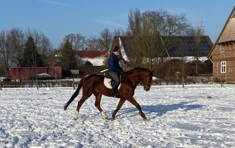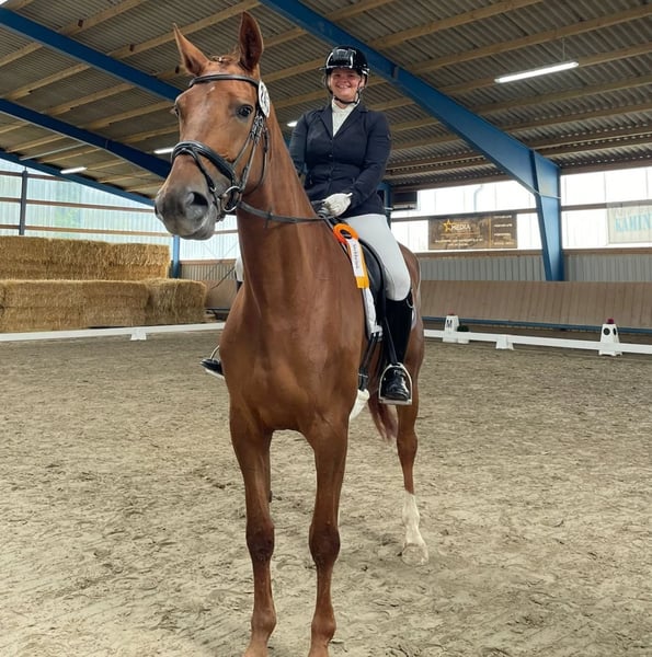 Ze werd pas op 5-jarige leeftijd voor het eerst gereden, maar heeft snel haar achterstand ingehaald en in 2025 gewonnen in de M-klasse dressuur voor amateurs, met meerdere placeringen in de L. Ze is intelligent en gevoelig, en ook kleinere ruiters kunnen haar moeiteloos rijden en verder opleiden. Te mooi voor beginners. Potentieel voor 20x60. Ook in omgang perfect – probleemloos ook alleen in het terrein te rijden. Ze heeft onder het zadel ook kleine sprongen overwonnen. Tot nu toe zonder enige gezondheidsproblemen of beperkingen. Schoft zonder hoefijzers. Echter, een röntgenonderzoek heeft bevindingen opgeleverd. Alleen om deze reden wordt ze onder de marktwaarde aangeboden. Direct van de fokker.