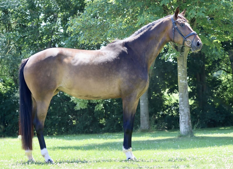 Secret's Quality is none other than the half-sister of the Olympic stallion Frizzantino FRH, who was the reigning Spanish champion and a successful Olympic participant with his rider. Secret's Quality is sired by the top stallion Secret, who has already produced many highly successful offspring with exceptional gaits. Secret was the Vice Bundeschampion of the 3-year-olds, the Vice World Champion in 2019, and in 2020 he secured the Bundeschampion title for 6-year-old dressage horses. Secret has produced numerous offspring in the significantly six-figure range through various auctions. Secret's Quality was backed as a 4-year-old and has been trained up to the level of Dressage Horses A. In 2025, we decided to take this wonderful and impressive mare into breeding. *** The mare is in foal to the stallion Follow Him's Schönweide for April 2026. *** Mare line of Aralda 1195301.