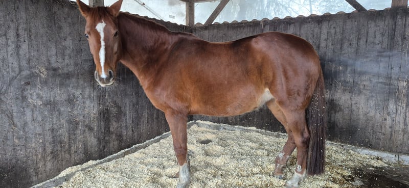 Due to a change in her owner's personal circumstances, my mare is looking for a new home where she can find her place in a herd and in someone's heart. She is only available to experienced horse owners under a protection contract. She requires attentive management. I am happy to provide all additional information upon request. Absolutely gentle with children and animals, she is easy to load and farrier-friendly (she has always been barefoot), confident in the field, and suitable for riding. She has a low herd hierarchy and is experienced in herd life and open stalls. Height at withers: 164 cm (16.1 hh). Born in 2017, started under saddle at 4.5 years old.
