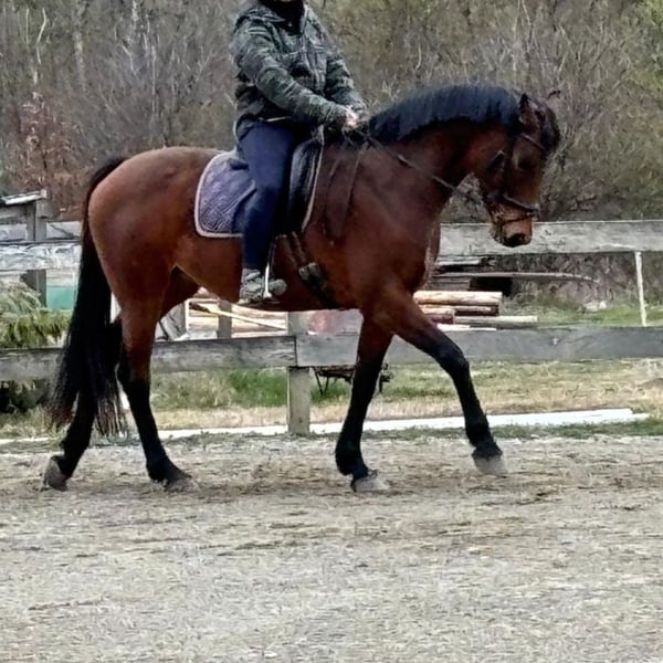Debido a la falta de tiempo, vendo a mi yegua Hannoveriana de 9 años, Fryda, muy poco utilizada. Es una yegua de gran interés para la cría, por su pedigrí y su movimiento elegante y expresivo. A los 6 años, ya tuvo un potrillo y fue muy fácil de manejar en esa ocasión. Fryda también ha sido montada, primero con su criadora en Alemania (antes de su potrillo), y posteriormente conmigo, aunque debido a mi embarazo no he montado mucho en ella y ahora estoy empezando a montar de nuevo. Se muestra algo inexperta y cautelosa, pero muy motivada. Si no se destina a la reproducción, su jinete debe ser muy tranquilo en las manos y con las piernas, para transmitirle la seguridad que aún le falta. En el manejo, es una yegua encantadora, conoce todo lo que hay en la finca. En la manada, suele estar en rango bajo, y está acostumbrada a box y paddock. Nunca ha tenido problemas de salud, es tranquila en la herradura y en el transporte. Altura: 164 cm. Una excelente yegua de cría, Una futura estrella en el Gran Cuadro, ¿O incluso para concurso de cross? Más información y vídeos a petición.