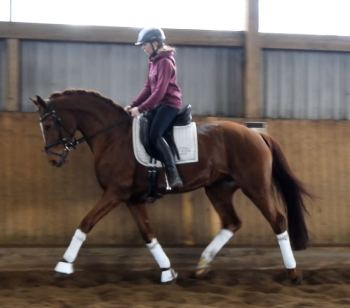 Hübsche Stute, die sich unkompliziert und gelassen präsentiert. Sie ist sehr brav zu reiten und kennt auch Gelände. Dazu ist sie nervenstark und von jedermann zu reiten. Mit ihrer edlen Erscheinung und Bewegungungen in guter Qualität ist sie ein echter Hingucker im Viereck. Ein Pferd zum Losreiten und Schleifen sammeln! Weitere Videos vorhanden. Mehr Infos finden Sie auf unserer Homepage. Probereiten jederzeit nach Absprache möglich.