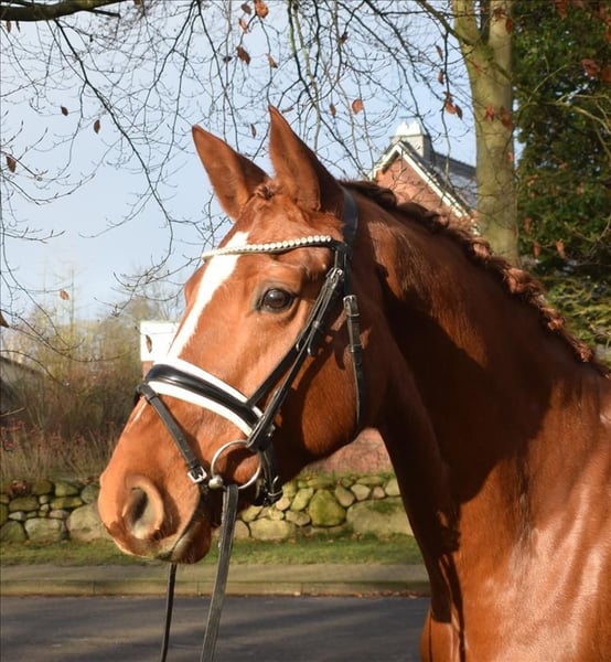Hübsche Stute, die sich unkompliziert und gelassen präsentiert. Sie ist sehr brav zu reiten und kennt auch Gelände. Dazu ist sie nervenstark und von jedermann zu reiten. Mit ihrer edlen Erscheinung und Bewegungungen in guter Qualität ist sie ein echter Hingucker im Viereck. Ein Pferd zum Losreiten und Schleifen sammeln! Mehr Infos finden Sie auf unserer Homepage. Probereiten jederzeit nach Absprache möglich.