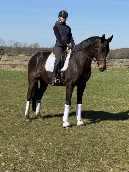 Zum Verkauf steht eine 9-jährige Stute mit einem Stockmaß von 1,72 m, die besonders durch ihre feine Rittigkeit und angenehme Anlehnung überzeugt. Sie ist ein Pferd, das sich leicht und harmonisch reiten lässt und ihrem Reiter ein sehr gutes Gefühl vermittelt. Neben ihrer Rittigkeit überzeugt sie durch ihren tollen Charakter. Sie ist freundlich, ausgeglichen und im täglichen Umgang unkompliziert. Die Stute wird direkt vom Züchter verkauft und hat bereits mehrere bis S**-Dressur siegreiche und platzierte Vollgeschwister.