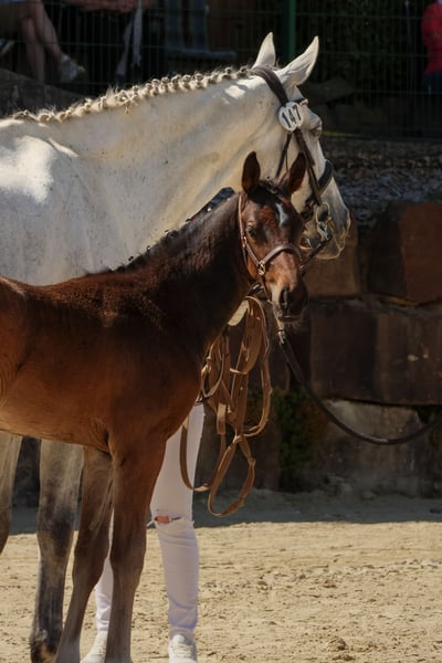 Zum Verkauf steht eine 9-jährige Schimmelstute mit viel Potenzial für den Sport. Sie wurde bereits erfolgreich in Dressur- und Springpferdeprüfungen der Klasse A vorgestellt und konnte sich dort platzieren. Aufgrund ihrer Abstammung und Einstellung bringt sie zudem beste Voraussetzungen für die Vielseitigkeit mit. Unter dem Sattel zeigt sie sich sehr angenehm und fein zu reiten, sensibel an den Hilfen und leistungsbereit. Trotz ihrer Rittigkeit ist sie kein Anfängerpferd. Auch züchterisch hat die Stute bereits überzeugt: Sie brachte zwei Hengstfohlen(von 2022 und 2024), von denen eines goldprämiert wurde. Beide Nachkommen können vor Ort besichtigt werden. Aufgrund der Fohlen sportlich noch nicht weiter gefördert. Aktuell kann sie wieder antrainiert werden oder alternativ erneut für die Zucht eingesetzt und gedeckt werden.