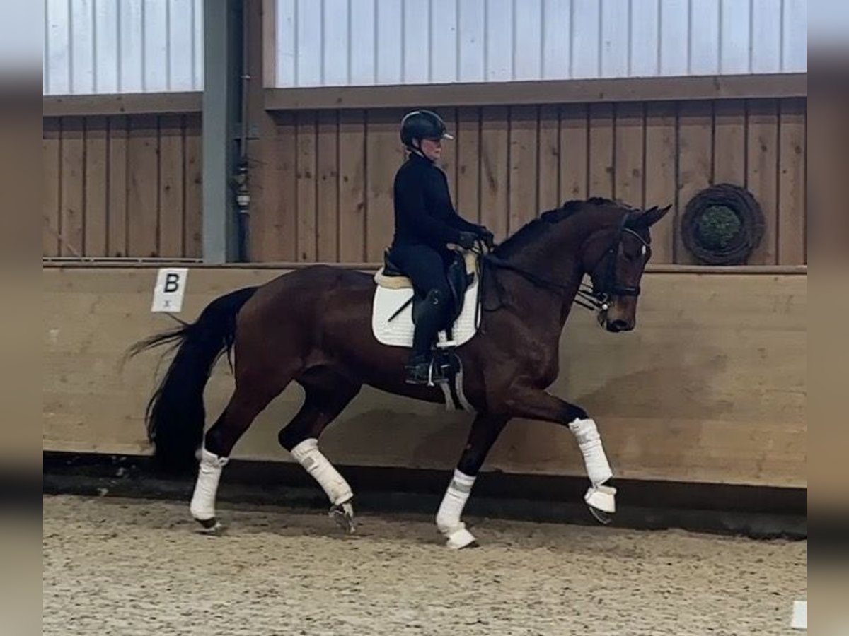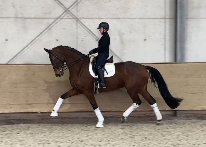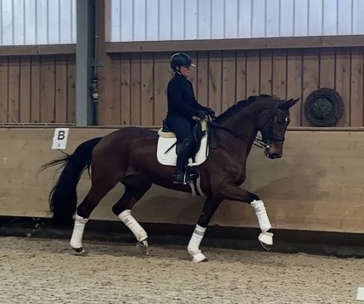 - Alter: 9-jährig - Größe: 1,78 m - Ausbildungsstand: L-Dressur fertig, M angefangen Abstammung: Finnigan x Rascalino x De Niro - TÜV: aktuelle Röntgenbilder liegen vor - Standort: Gestüt Schorer, Frankenhofener Str. 3, 86860 Jengen/Weicht Diese Stute überzeugt durch ihre Größe, Rittigkeit und positive Einstellung zur Arbeit. Sie ist aktuell sicher auf L-Niveau und wird auf Trense wie auch Kandare geritten. Seitengänge werden derzeit weiter gefestigt, die fliegenden Wechsel befinden sich im Aufbau. Bei entsprechender Förderung ist sie zum Sommer M-einsatzbereit. Trotz ihres großen Rahmens ist sie ein feines, sensibles und sehr angenehmes Reitpferd, stets lernwillig und mit klarer Versammlungsbereitschaft. Besonders in den versammelten Lektionen zeigt sie viel Talent und ein gutes Körpergefühl – ein Pferd, das noch deutlich unter seinen Möglichkeiten geht. Im Umgang präsentiert sie sich lieb, menschenbezogen, unkompliziert und sozialverträglich. Sie kennt den normalen Reitalltag, ist schmiede- und verladefromm, kennt Führmaschine, Koppel (auch mit anderen Pferden) sowie Ausreiten. Da die sportliche Förderung bei den Vorbesitzern nicht im Vordergrund stand, weist sie noch keine nennenswerten Turniererfolge auf – ist jedoch jederzeit turniereinsatzbereit und bietet sehr viel Entwicklungspotenzial. Ein Pferd, das sich sowohl für den ambitionierten Amateur als auch für den Profi als interessantes Investment eignet.