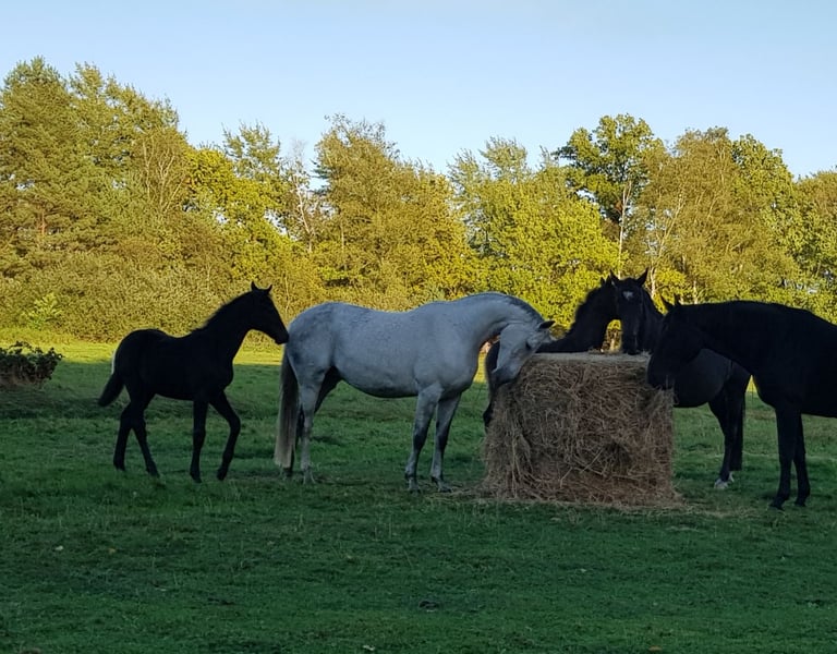 Das Fohlen ist aufgeweckt, neugierig, mutig und dabei sehr ausgeglichen. Sie hat einen tollen Charakter! Außerdem besitzt sie 3 sehr gute Grundgangarten. Das Fohlen ist noch schwarz, wird aber Schimmel. Ihre Mutter Gordula Grey (von Grey Top) ist hann. Prämienstute und hatte bei Ihrer Stutenleistungsprüfung eine "9" in Rittigkeit vom Fremdreiter bekommen. Im Springen hatte sie eine "8,5". Alle verwandten Pferde aus unserer Zucht sind sehr rittig. Die Vollschwester von Diaconti Dream (jetzt 5-jährig) haben wir nach 4-monatigem Anreiten verkauft. Sie war ein paar Monate später schon in einer Springpferdeprüfung platziert. Mehrere Vollgeschwister der Mutter (Gordula) gehen erfolgreich im Springsport.