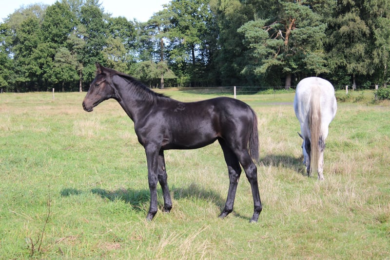 Het veulen is levendig, nieuwsgierig, moedig en zeer evenwichtig. Ze heeft een geweldige karakter! Bovendien heeft ze 3 zeer goede basisgangen. Het veulen is nog zwart, maar zal een schimmel worden. Haar moeder Gordula Grey (van Grey Top) is een Hannoveraanse premie merrie en heeft bij haar merrietest een "9" voor rijdbaarheid van een vreemde ruiter gekregen. Bij het springen had ze een "8,5". Alle verwante paarden uit onze fokkerij zijn zeer rijdbaar. De volle zus van Diaconti Dream (nu 5 jaar oud) hebben we na 4 maanden inrijden verkocht. Ze was een paar maanden later al geplaatst in een springpaardenwedstrijd. Verschillende volle broers en zussen van de moeder (Gordula) presteren succesvol in de springsport.