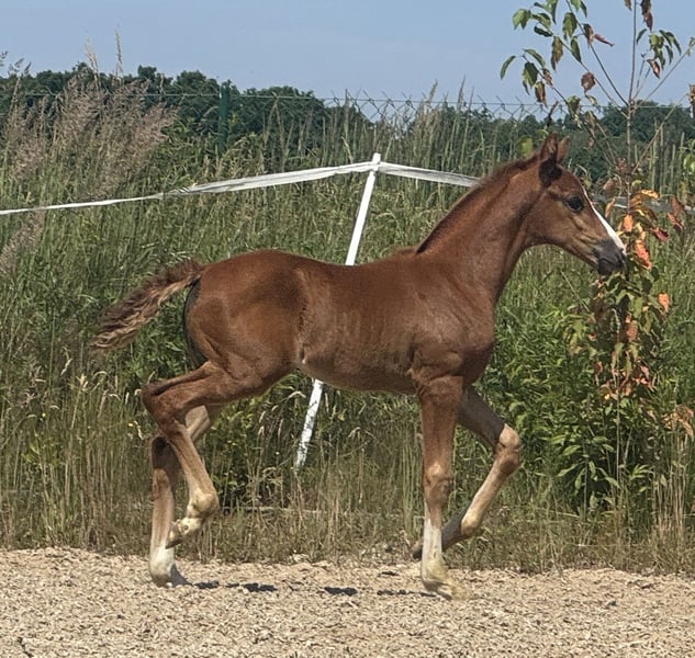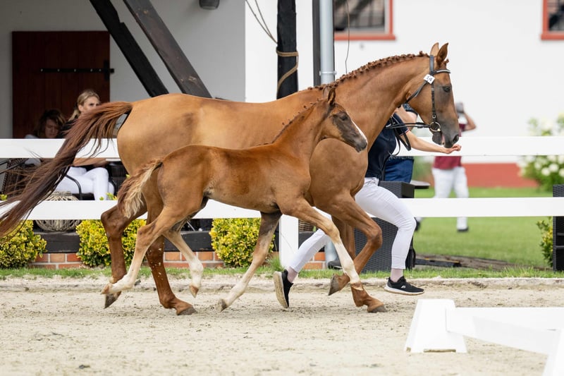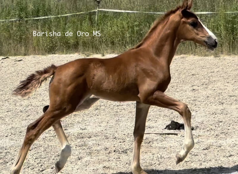 Outstanding Hanoverian Dressage Filly – Barisha de Oro MS ✨ (Be My Dancer / Bretton Woods / Samarant) 🏆 Champion of the Racot Foal Show 2025 – praised by the judges for her movements, rhythm, balance, elasticity, and excellent hind leg. Great trot and uphill canter. Born 2025 – A filly of rare beauty, modern type, and spectacular movement + top dressage pedigree, high level sport prospect.. 🌟 Pedigree highlights: Sire: Be My Dancer (Benicio × Vivaldi) – elite dressage stallion with top-class bloodlines, outstanding performance test scores, and proven sport record. Dam line: Alessia RF (Bretton Woods × Samarant / Rubinstein I) – combining Johnson / De Niro with the influence of Sandro Hit and Rubinstein I. Her pedigree unites 4 generations of world-class dressage producers: Benicio / Belissimo M → elasticity, superb rhythm, and top rideability Vivaldi / Jazz → expression, suppleness, modern movement Johnson / De Niro / Sandro Hit / Rubinstein I → proven performance, power, and rideability Plus legendary sires such as Bolero, Krak C, and Ferragamo further back in her lines. 🌟 Why Barisha de Oro MS? A future star for the highest levels of dressage: she combines beauty, movement, temperament, strength, and bloodlines in one extraordinary package. Athletic, strong, and expressive, yet people-oriented, curious, and brave. Imprinted, raised in pastures with peers, ensuring correct development and socialization. 📍 Available November 2025, directly from breeder