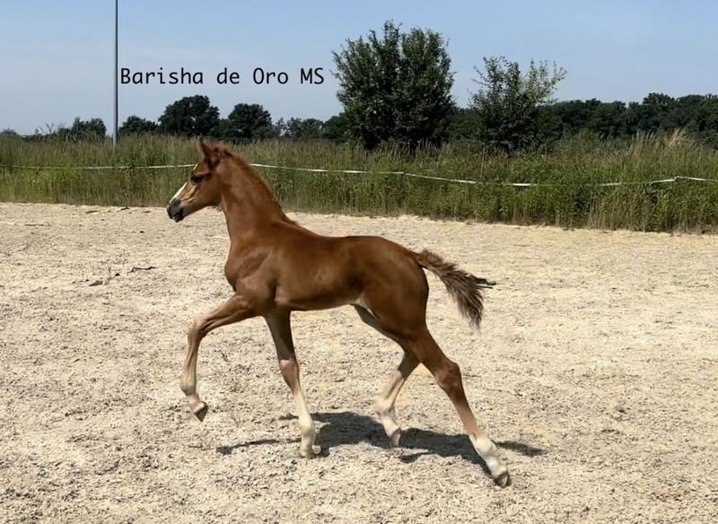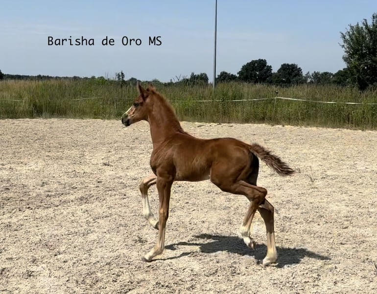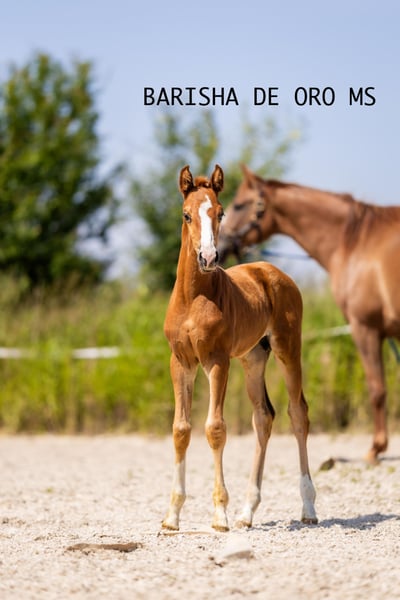 Outstanding Hanoverian Dressage Filly – Barisha de Oro MS ✨ (Be My Dancer / Bretton Woods / Samarant) Born 2025 – A filly of rare beauty, modern type, and spectacular movement + top dressage pedigree. 🏆 Champion of the Racot Foal Show 2025 – praised by the judges for her movements, rhythm, balance, elasticity, and excellent hind leg. Great trot and uphill canter. 🌟 Pedigree highlights: Sire: Be My Dancer (Benicio × Vivaldi) – elite dressage stallion with top-class bloodlines, outstanding performance test scores, and proven sport record. Dam line: Alessia RF (Bretton Woods × Samarant / Rubinstein I) – combining Johnson / De Niro with the influence of Sandro Hit and Rubinstein I. Her pedigree unites 4 generations of world-class dressage producers: Benicio / Belissimo M → elasticity, superb rhythm, and top rideability Vivaldi / Jazz → expression, suppleness, modern movement Johnson / De Niro / Sandro Hit / Rubinstein I → proven performance, power, and rideability Plus legendary sires such as Bolero, Krak C, and Ferragamo further back in her lines. 🌟 Why Barisha de Oro MS? A future star for the highest levels of dressage: she combines beauty, movement, temperament, strength, and bloodlines in one extraordinary package. Athletic, strong, and expressive, friendly & people-oriented, curious, and brave. Imprinted, raised in pastures, ensuring correct development and socialization. 📍 Available November 2025, directly from breeder