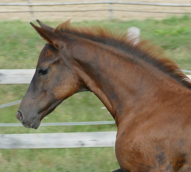 Schokofuchs aus bestem Züchterhaus, Großmutter ist Vollschwester zu Dancier. Vollbruder des Fohlens war 2024 5. auf dem Deutschen Fohlenchampionat, Mutter im Hann. Dressurpferdeprogramm *,ein weiterer Bruder von Fahrenheit erfolgreich Bucha bei den 6j, eine Schwester von Sezuan Siegerstute und HvdD Schau prämiert. BEYONCE ist ein altersgemäß erzogenes, vertrauensvoll dem Menschen zugewandtes Stutfohlen mit sehr viel Qualität, regelmäßig entwurmt und beim Schmied, sehr gut gefüttert und in bester Kondition. Wird jetzt abgesetzt und kann zur Aufzucht bei uns bleiben. Aktuelle Videos werden gerne unter 0171-4720209 verschickt