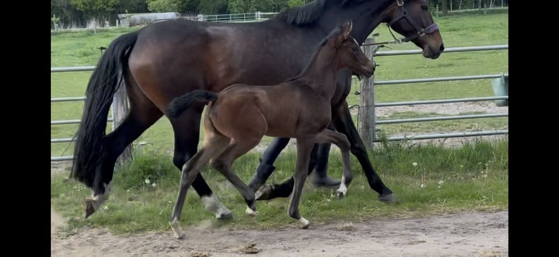 Dieses bildschöne Stutfohlen mit sehr guten Bewegungen sucht wegen Betriebsaufgabe ein neues Zuhause. Ihre Mutter ist selbst sehr bewegungsstark und vererbt es auch an ihre Fohlen - ein Halbbruder zum Fohlen wird gerade zur Körung vorbereitet. Das Fohlen wächst artgerecht in einer Herde mit anderen Stuten und Fohlen auf und wird regelmäßig dem Schmied vorgestellt und mit Mineralien versorgt. Bei Interesse gerne einfach anrufen oder per WhatsApp melden unter 0172-2942839