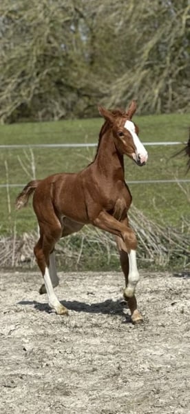 Sehr rittiges Blut vereint aus beiden Seiten der Eltern. Entertainer Number One x Livaldon Blut x Fürst Heinrich - Brentano II vielversprechendes Stutfohlen mit bester Perspektive Zum Verkauf steht ein äußerst typvolles, ausdrucksstarkes Stutfohlen, das bereits jetzt durch seine Präsenz und natürliche Eleganz beeindruckt. Vermutlich wird sie sich – wie ihre Mutter – als edler Schokofuchs entwickeln. Dieses Fohlen überzeugt mit drei hochweißen Abzeichen sowie einer markanten Blässe und präsentiert sich insgesamt sehr schick und harmonisch im Exterieur. Besonders hervorzuheben sind ihre überdurchschnittlichen Bewegungen: viel Raumgriff, eine aktive, kraftvolle Hinterhand mit starkem Abdruck sowie eine schöne Schulterfreiheit lassen bereits jetzt großes sportliches Potenzial erkennen. Sie zeigt sich dabei stets aufmerksam, charmant und mit viel Ausdruck. Auch die Stutenlinie spricht für sich: Die GrossMutter ist als Elite-Stute ausgezeichnet und stammt aus einer hochinteressanten, leistungsgeprägten Linie. Der gekörte Bruder der Mutter konnte bereits mehrfach Reitpferdeprüfungen auf hohem Niveau gewinnen und wurde zudem in den USA gekört. Eine Schwester der Mutter ist bereits S-erfolgreich im Sport, ebenso wurden die Halbgeschwister der Mutter mit der Staatsprämie ausgezeichnet. Die Urgroßmutter brachte sowohl gekörte Hengste als auch S-erfolgreiche Sportpferde hervor – Leistungsbereitschaft und Vererbungskraft sind hier klar verankert. Dieses Stutfohlen empfiehlt sich besonders für ambitionierte Reiter und Züchter, die ein Nachwuchspferd mit Perspektive für Sport und Zucht suchen und bereit sind, sie entsprechend zu fördern. Wir wünschen uns für dieses besondere Fohlen fördernde, erfahrene Hände, die ihr Potenzial erkennen und weiterentwickeln und freuen uns auf Ihre Zuschrift und auf ein nettes persönliches Kennenlernen.