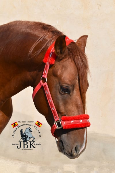 Hispano Árabe POTOSI busca un nuevo hogar Este espléndido semental Hispano Árabe de pura raza es un ejemplar magnífico de su raza. Se mueve con mucho espíritu y elegancia, siendo muy ágil y expresivo. Puedo imaginarme a Potosi bien en la Equitación de Trabajo en el futuro. Bajo el sol andaluz, su pelaje brilla como el fuego. Un caballo de ensueño que además es muy cariñoso. Creció en un grupo en la yeguada de su hogar. Allí sigue siendo su hogar, nunca ha experimentado nada malo en su vida y fue criado de manera adecuada, con alimentación suplementaria de minerales y desparasitaciones, como se debe. Quien desee formar a un tesoro así por sí mismo: aquí está, el Potosi. Nacido el 09.02.2022, mide 1,58 m actualmente.