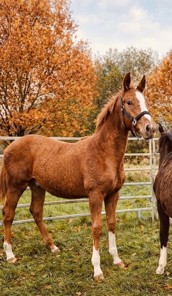 For sale is a promising Holsteiner stallion by Deichkind out of a mother by Amigo xx - Alcatraz - Wildfeuer - Anklang, born in May 2025. This elegant chestnut has great movements and is already very trusting. Expected final height will be around 170 cm. Dam line 318D1. He will be handed over in the fall with a solid foal ABC.
