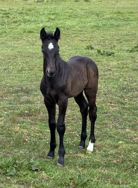 With Duncan Hero, we present a correct, people-oriented, and typy colt in a modern appearance. He impresses with his long-legged, correct conformation and stallion-typical head/neck area. Duncan presents himself with a correct character, friendly and self-confident. A foal with a great sporting future. His 2-year-old full sister is in our possession and can also be viewed upon request. Mother Quira is a Holsteiner district premium mare by Quintero / Ramirado / Acord II and comes from the successful Holsteiner line 474 a. Her sister Farmers Girl was already successful at the international 1.50m level at the age of 9 with Frank Schuttert (NL). Countless licensed stallions descend from this line, such as Bubalu VDL, Calato, Calderon, Fernando, Great Pleasure, Nimrod B, Q-Verdi, Quicktime, or Vingino. In sports, legendary names are also represented, such as Brilliante (vice European champion with Inken Johannsen), Bubalu VDL (silver medal team show jumping Olympic Games London 2012), or the stamp stallion Q-Verdi (silver medal team show jumping Olympic Games London 2012 / world and European championship gold medalist). Furthermore, there are numerous successful show jumpers in the highest classes. Additionally, there are many winning mares at Holsteiner elite mare shows. A secured performance line in the areas of sport and breeding! Quira's first colt from 2014 by Mylord Carthago was successfully auctioned at the Quality Auction in Zangersheide and was already top placed internationally at the age of 6. Her offspring by Taloubet Z has also gained initial experiences in the course and has already been able to place. Due to her lineage and outstanding progeny, Quira was not used in sports. His father Diacontinus (Diarado / Contendro) needs no introduction. Countless offspring are regularly seen in top sports, at the Bundeschampionat, and at the World Championships for young horses. Currently, 28 licensed stallions are among his descendants. For years, he has been leading the FN breeding value estimation for young horse tests.