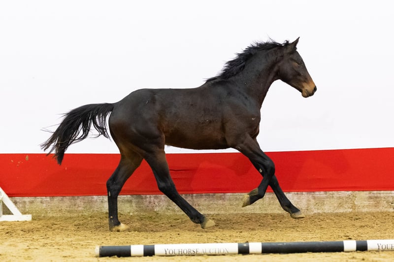 A truly spectacular jumper with exceptional power You do not see horses like this very often. Diaran immediately stands out for his exceptional power and athletic ability. He shows a strong engine from behind, a good canter and a correct, spacious trot. Over the jump he displays outstanding talent, with excellent technique, plenty of scope and very quick reflexes. A horse that impresses every time he jumps and never fails to excite. We are extremely enthusiastic about his quality and presence. A truly special showjumping prospect. Sire Diarado (Diamant de Semilly x Corrado I) is an Oldenburg elite and Sieger stallion who competed himself at 1.50m level. He is licensed with Holstein, BWP, Oldenburg, SF and Hanoverian. Diarado is one of the leading sires of his generation and has produced numerous international Grand Prix horses, including Don Diarado, Donatello 141 and Karoline of Ballmore, all competing at 1.60–1.70m level. Through Diamant de Semilly and Corrado I, this line represents absolute world-class jumping genetics. Damline The dam is Mary-Lou (Karajan), descending from a strong Holsteiner performance family. Karajan (Kannan GFE) competed internationally at 1.65m level and is known for passing on scope, canter and attitude. The second dam Fascination I (Cascadello I) comes from the influential Cascadello line, himself an international 1.50m performer, renowned for technique and lightness. The third dam Zara XXVI (Canturo) produced several sport horses and confirms the consistent performance of this family. Further back in the damline we find Nova II (Acrobat II), with among others: – Quarius (Quebec), international 1.60m – Quite Capitano (Quite Capitol), approved stallion, 1.40m – Quick Time (Quick Nick I), international 1.35m A damline with proven international performance up to 1.60m level and several approved stallions.