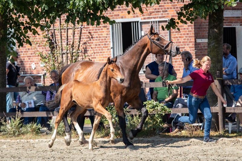 Poulain étalon champion de Vigado ! Sa mère Zoe a obtenu le prix d'État et a elle-même réussi dans des épreuves de dressage et de saut jusqu'au niveau L sous une cavalière junior. De cette lignée maternelle, des étalons approuvés ont déjà vu le jour. Lignée 628b. Viscaro est correct, très bien dessiné, avec un joli visage. Il est très gentil à manipuler, tout en étant intelligent et vif. Il a des mouvements très bons. Prix à discuter.