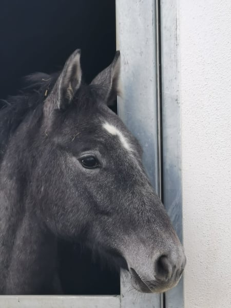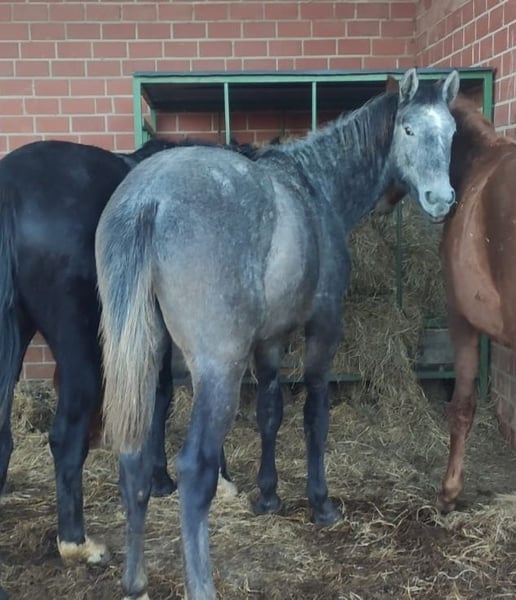 Holsteiner stallion, born 05/2022, gray, by Quiwi Capitol, out of All You Need 3, Amantus-Acord 2, Francisco-Frühlingsball (Westphalia) The dam was placed in advanced (S) level show jumping competitions. Quibello grew up with us at the farm for one year He knows haltering and hoof trimming from an early age and is regularly vaccinated and wormed. He is a very sweet, affectionate and people-oriented fellow. He has been living in the stallion herd in Nienhagen near Celle since May 2023. I am selling him with a heavy heart due to giving up breeding and reducing the herd, only in good conditions suitable for horses.