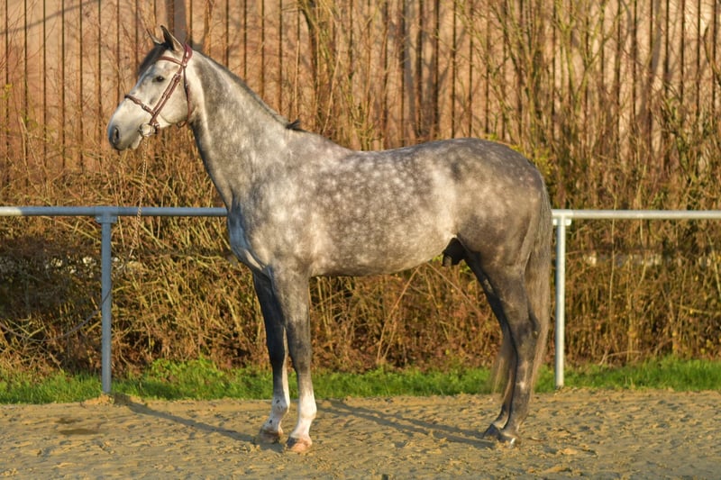 Absolutely stunning breeding stallion Cici – your future partner in show jumping! We are pleased to introduce Cici, an exceptionally talented and beautiful breeding stallion. Cici stands out due to his high quality and impressive jumping ability. With his calm and well-mannered nature both on the ground and under saddle, he is the perfect partner for ambitious riders. First-class jumping talent: Cici jumps effortlessly and consistently demonstrates eagerness to learn and motivation during training. Even at competitions, such as a 1.20m course, he handles the challenges with ease. He successfully completed a 50-day stallion performance test in jumping and is freshly shod – with no issues! Ready for use and easy to handle: Cici is immediately ready for competition and prepared to be ridden. Under saddle, he behaves stallion-like in a discreet manner and does not show interest in mares. Additionally, he is well-trained and also makes a great impression in dressage. Special offer: If taken immediately, you will receive a 5% discount on the sale price! Test opportunity: We offer you the chance to test Cici with us for one week, accompanied by experienced trainers. This trial week can be tailored to your needs and includes lessons as well as practical experience. Please note that a trial fee applies. Trial riding: You are welcome to visit and see Cici in person. The cost for a test ride or viewing is €50 per person. Seize this unique opportunity to get to know Cici and see his potential firsthand! We look forward to your inquiry!