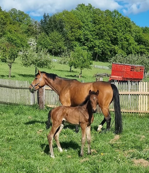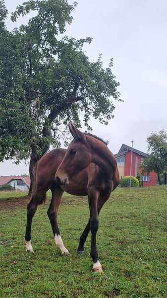 Angeboten wird ein bildschöner, ausdrucks- und bewegungsstarker Holsteiner Hengst von Million Dollar x Comme il faut x Caretano aus dem Stamm 104A. Urgroßmutter Isett von Calletto I hat in unterschiedlichen Anpaarungen mehrere sporterfolgreiche Pferde hervorgebracht (Quicky H, Casino Royale, Campino H) aktuell machen ihre Enkel Zalazar D und Victoria D auf sich aufmerksam . Aus der hochinteressant gezogenen und fruchtbaren Großmutter U-Careta entstammen inzwischen 9 Pferde, darunter die in der Vielseitigkeit in den USA erfolgreichen Friday und Clueso. Die weiteren Nachkommen zeichnen sich ebenfalls durch Leistungsbereitschaft, hohes Vermögen und gute Rittigkeit aus. Die Mutter Holly KM musste wegen einer Verletzung bereits früh in die Zucht wechseln, erhielt eine Bezpr und brachte bislang 5 Fohlen, 4 davon prämiert. Der Hengst steht in kleiner Herde (3 Stuten, 3 Fohlen) und wächst mit Menschenbezug auf. Er ist artig und gut zu händeln (kennt Halfter, Hufschmied und Tierarzt). Er ist prämiert und kann bei Interesse gern besichtigt werden.Weitere Informationen gern auf Anfrage.
